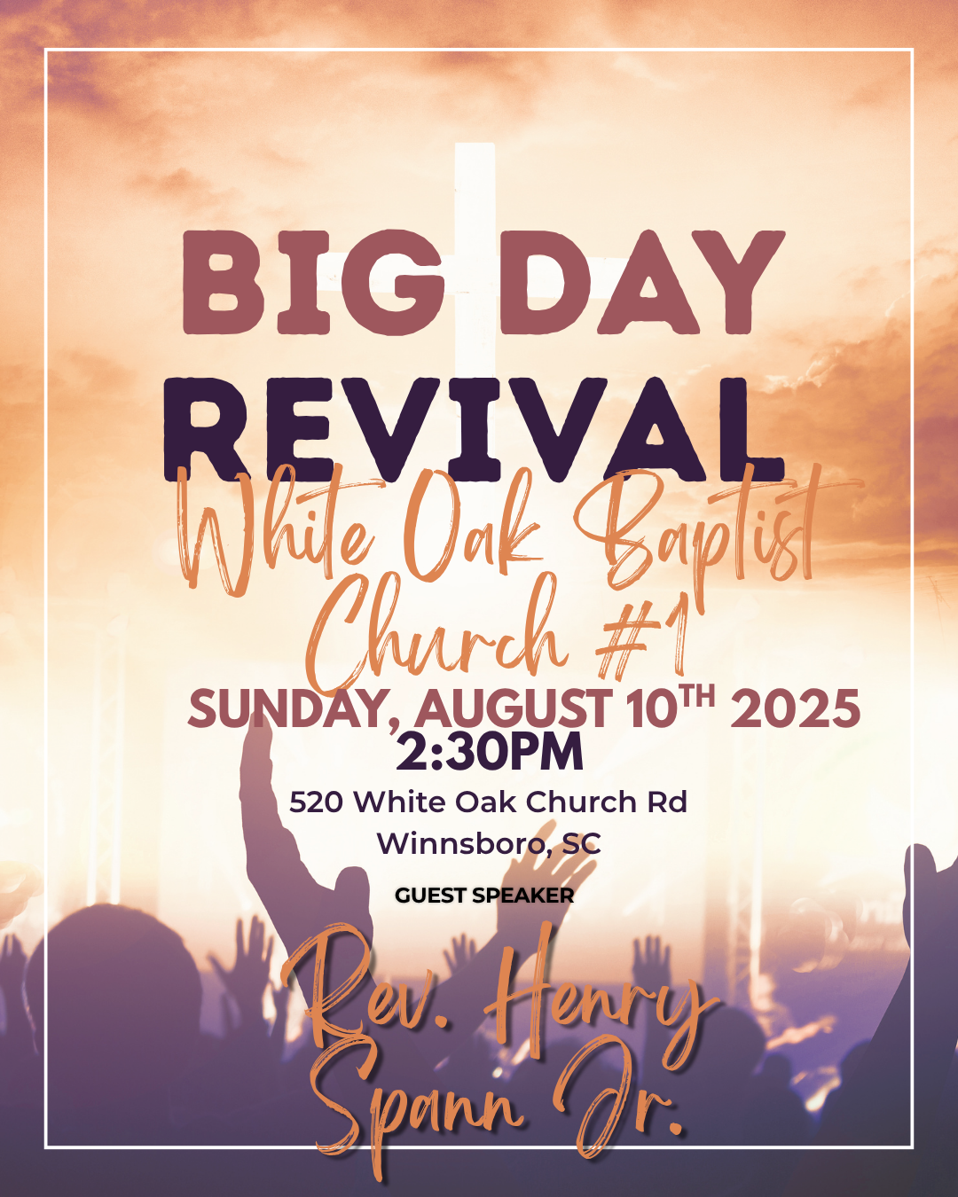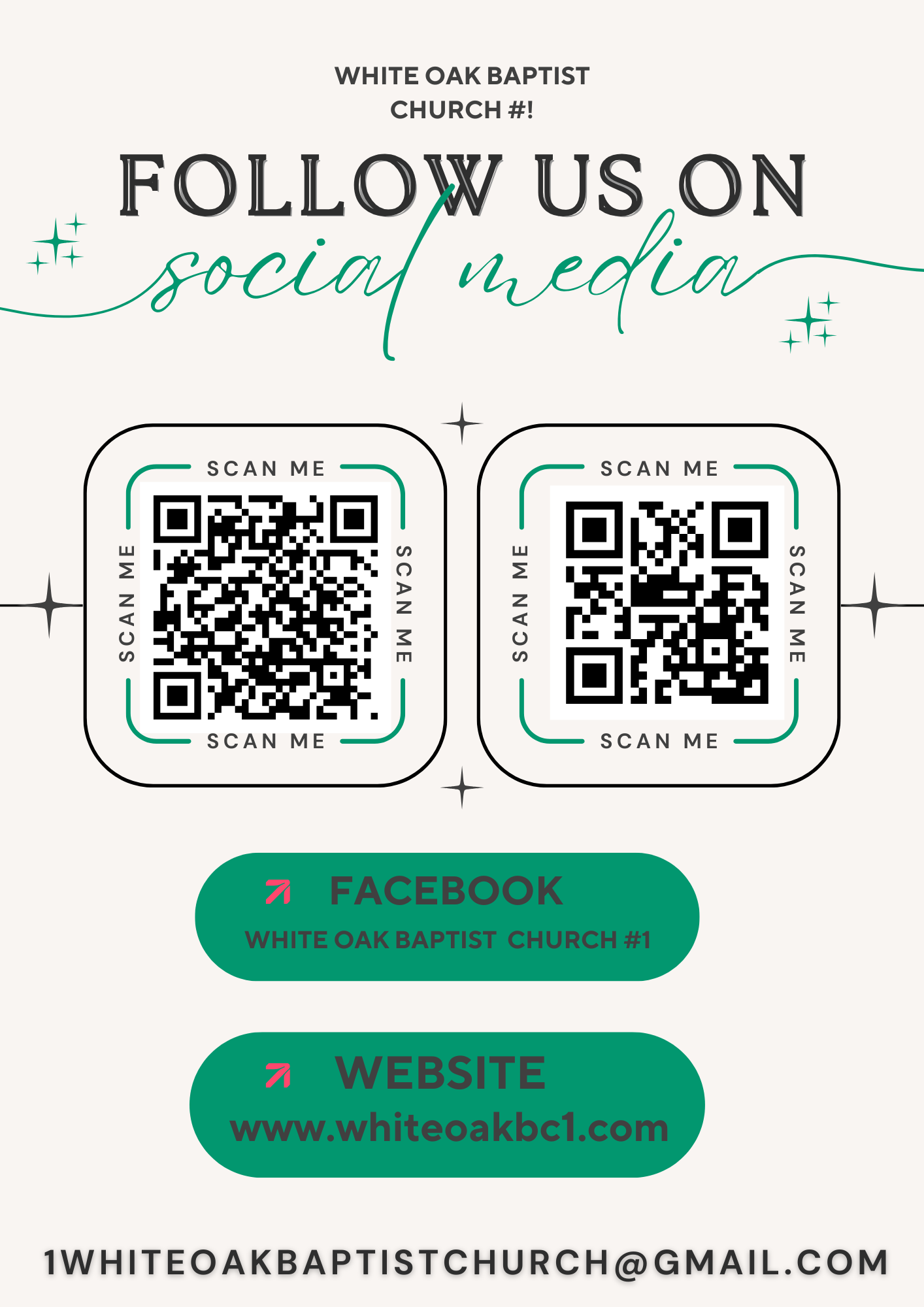 We are delighted that you decided to visit with us. We are a body of Christian believers that worship the true and living God. We believe that “with God nothing is impossible”. We invite you to come and worship with us on any Sunday of your choosing or you can visit us online. We are the original “One Stop Shop.” You can find whatever you need spiritually here at White Oak Baptist #1. Please, please come again!